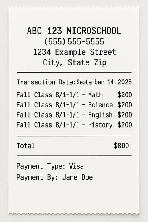 Example of an acceptable receipt for a micro-school/co-op: